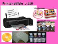Printer edible image epson L-800 dengan 6 warna tinta set, tampilan kualitas gambar sangat prima terutama untuk cetak warna warna logo silver dan gold sangat menawan diatas kertas icing paper maupun kertas transfer cokelat.